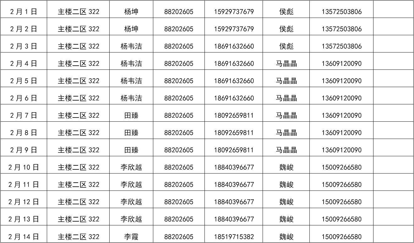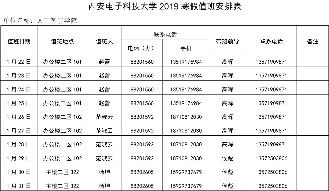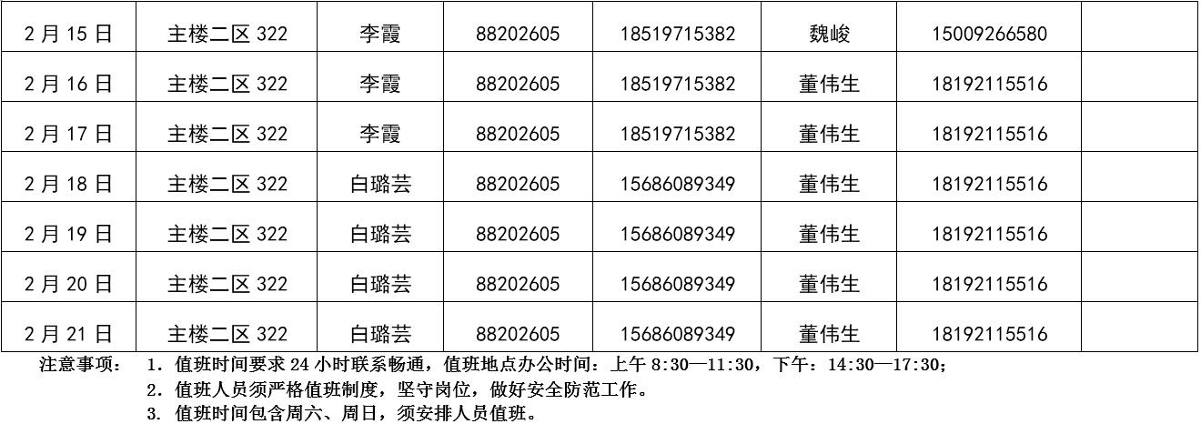 永利23411集团2019年寒假值班表