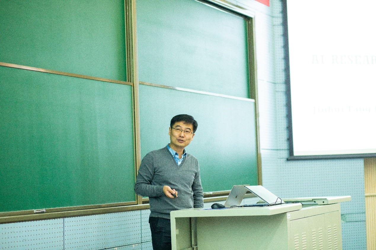 除此之外,唐金辉教授还介绍了团队在多媒体索引与搜索、视频动作分析与识别、图像与视频去模糊与增强、人脸识别与分析,视觉和学习加速算法等诸多领域的研究与进展,并给在座学子提供了很多宝贵意见。