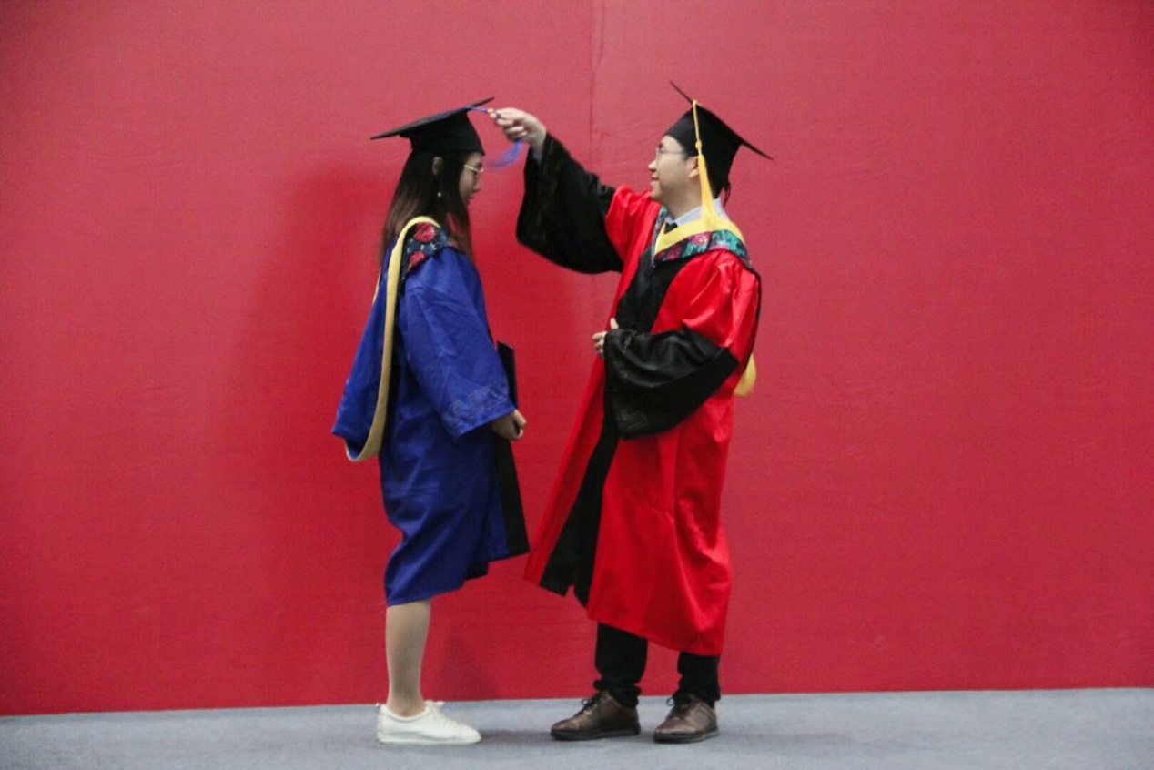 授位过程中,伴随着播音员宣读授位学生名单,永利23411集团导师轮流为毕业生颁授学位,执拨穗礼并合影留念,整个过程气氛热烈而不失庄严。