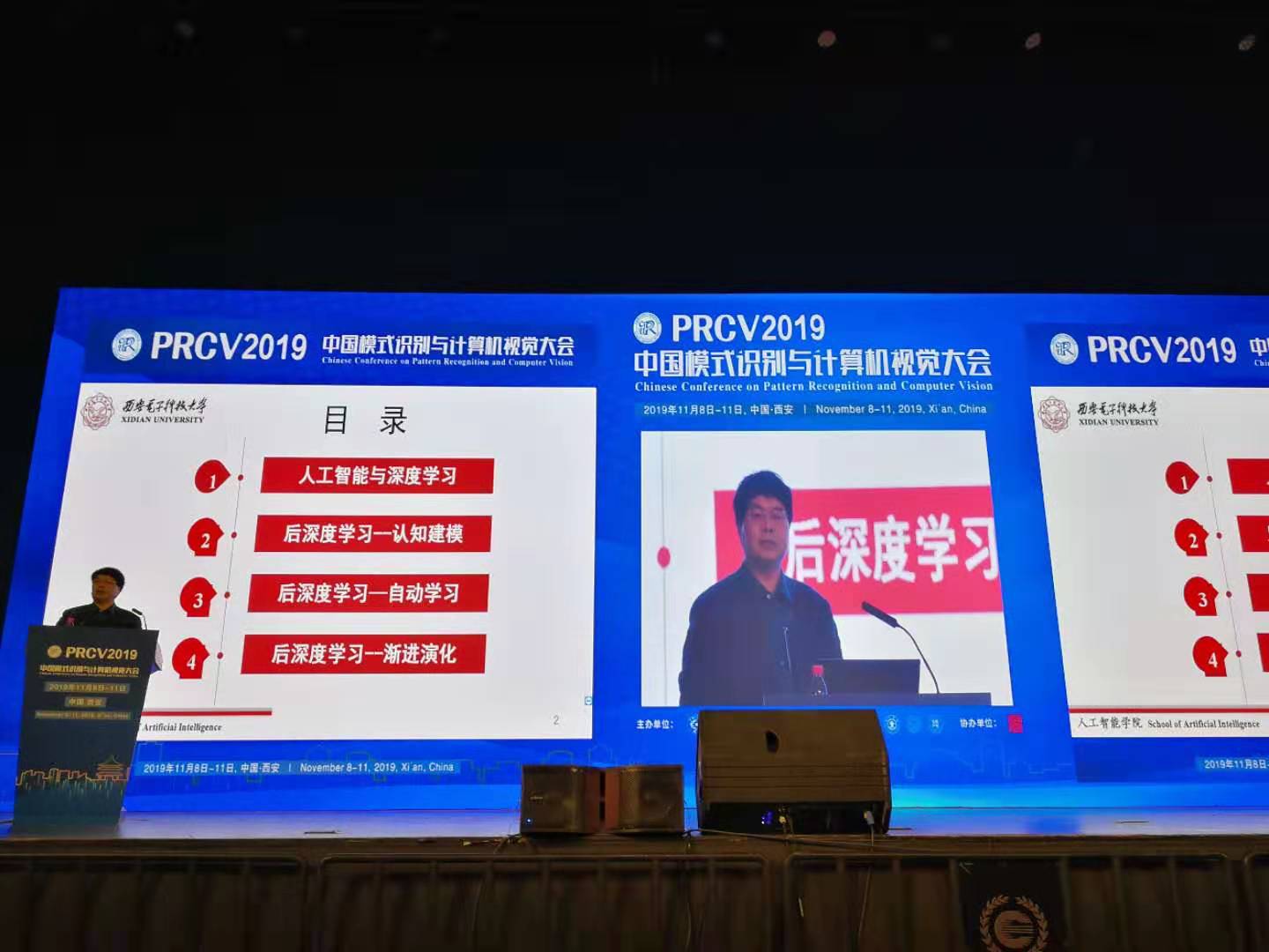 2019年11月9日,计算机科学与技术学部主任、永利23411集团焦李成教授受邀参加第二届中国模式识别与计算机视觉大会(PRCV 2019),并在大会作了题为《后深度学习的挑战与思考》的主旨学术报告,报告中非常深刻的阐述了表征学习和深度学习概念与思考。据悉,本次大会注册人数超1750人,合计近2000人参会,盛况空前。