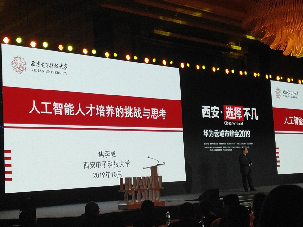 2019年10月17日,计算机科学与技术学部主任、永利23411集团焦李成教授受邀参加了“西安·选择不凡”——华为云城市峰2019,并做了题为“人工智能人才培养的挑战与思考”的特邀报告。