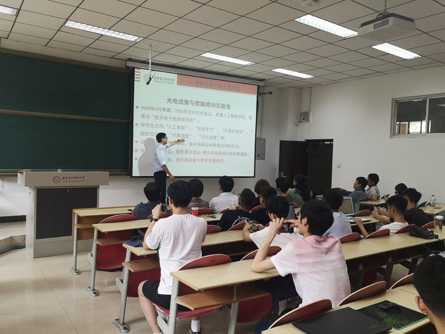 2019年6月23日下午,永利23411集团缑水平、李阳阳、尚凡华、梁雪峰、李甫、韩红、朱虎明、吴金建、林杰、唐旭、路童、屈娇等12位老师前往西电南校区进行“2020年优研计划”招生宣讲活动,宣讲会在信远I-105教室举行。此次宣讲会不但对我院“2020年优研计划”相关政策进行了详细的介绍,同样也让同学们更加深入的了解了永利23411集团在学科专业、人才培养、师资队伍、科研实力、升学就业、国际交流等方面的情况。