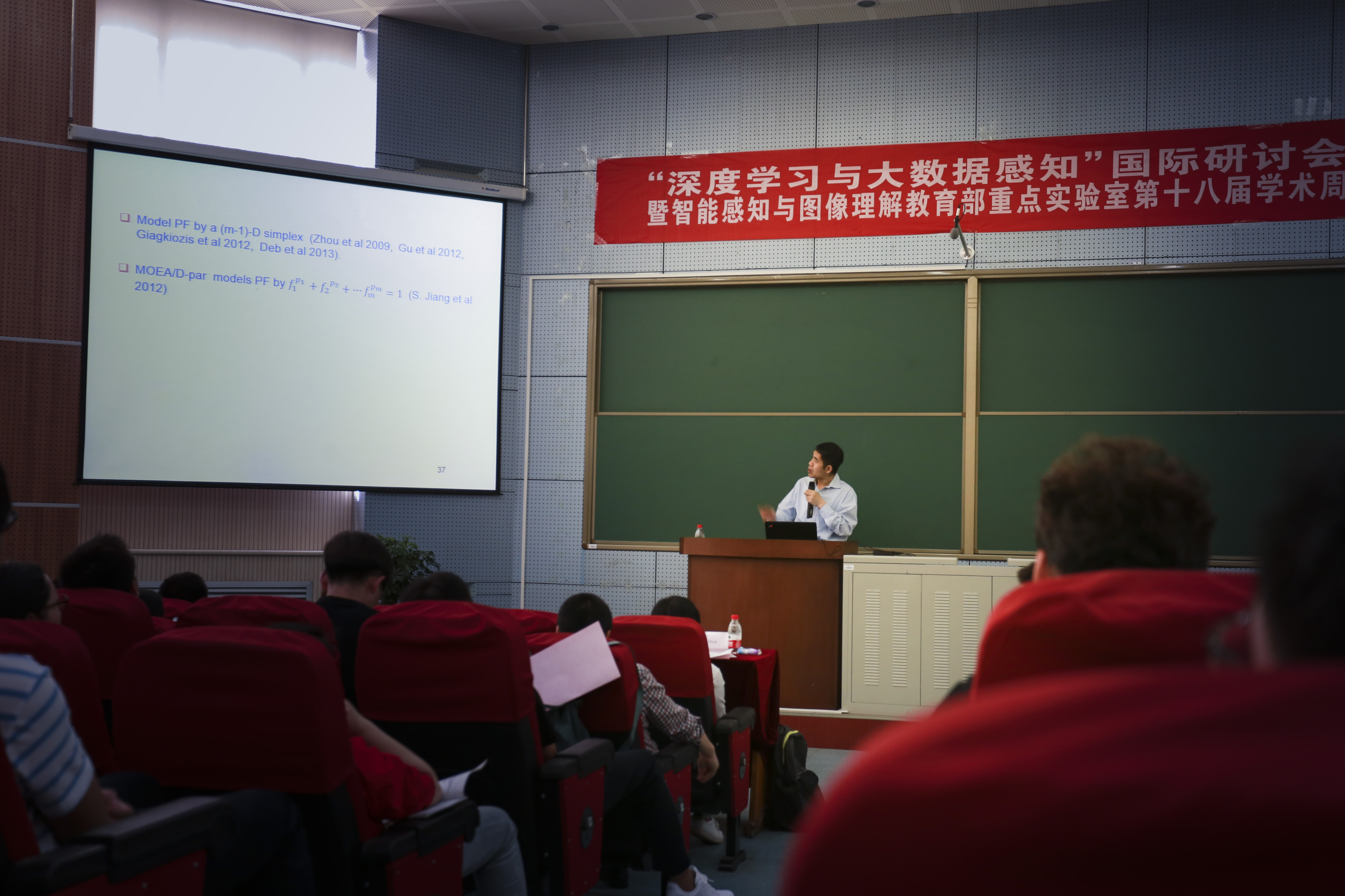 25日上午8:30分“深度学习与大数据感知”国际研讨会在永利yl23411集团侯彪教授的主持下正式开幕,在25日到28日4天的学术活动中共有45场精彩的学术报告呈现,由领域顶尖专家学者、新锐企业领导者及刻苦钻研的学生共同展现了多样化的学术理念与实践应用,每场报告都座无虚席,走道也站满了学生,报告厅成为了一片浩荡的求知之海洋,每一朵浪花都饱含着新知与思考。45场报告涉及了“基于脑认知机理的条件证据理论及其深度学习方法”、“Multi-objective Bayesian Optimization”、“高分辨率图像智能处理技术”、“Scene Representation and Classification from Remote Sensing Images Based on Deep Learning”、“深度学习影像感知及解译”、“数据驱动的进化优化”、“面向机器人灵巧操作的认知传感与大数据处理”、“大数据、云计算、物联网-计算智能的研究前沿与应用”、“变分贝叶斯联合优化及应用”、“头脑风暴优化算法”、“Online Ensemble Learning of Class Imbalance Data”、“Current Hot Topics in Many-Objective Optimization”、“Online Growing Neural Gas for Anomaly Detection in Changing Surveillance Scenes”、“类脑计算的理念与实践”、“复杂场景中人群行为的研究及其应用”、“Remote Sensing and Media”、“协同过滤算法关键性技术及其稀疏性研究”、“概率分类学习”、“无人车场景计算与自主运动”、“大数据时代模式识别的机遇与挑战”、“语义通讯”、“What Can Evolutionary Algorithms Do on Complex Network”等各科研领域与课题。