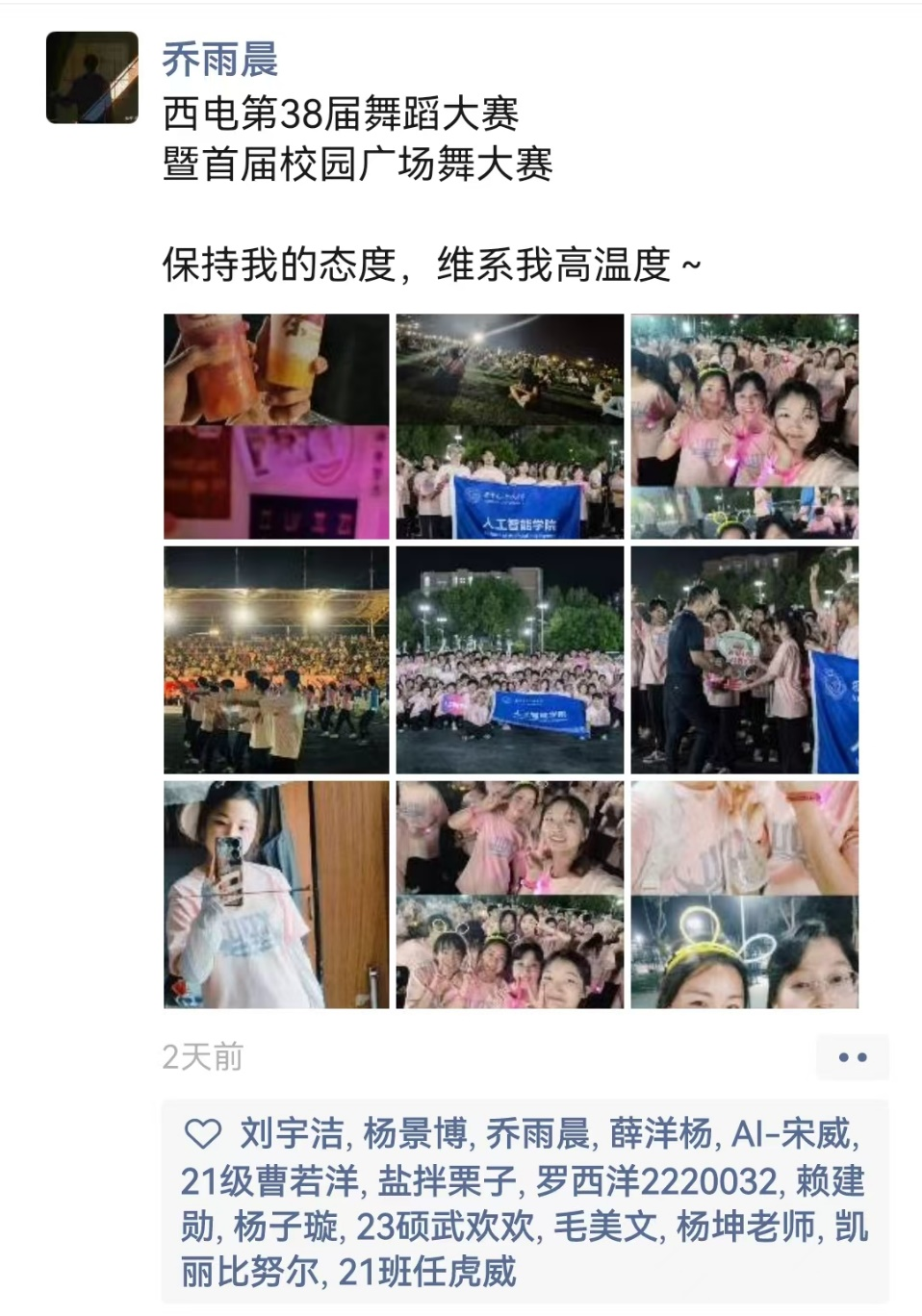 以舞之名,传递热情。此次广场舞大赛不仅响应了国家建设体育强国的目标,塑造良好的学校环境,更加展现了同学们积极进取、奋发有为的精神面貌。