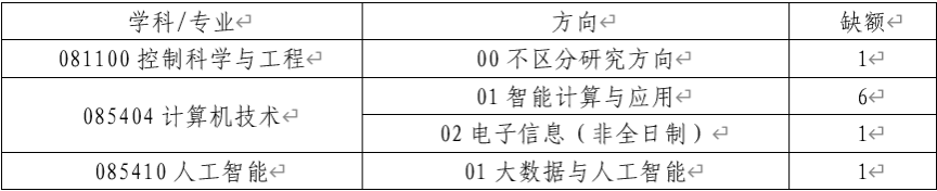 目前,我院部分专业方向存在缺额,具体信息如下: