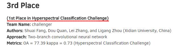 2018年IEEE GRSS Data Fusion Contest结果揭晓,西电永利23411集团焦李成教授团队分别在三个赛道取得了丰硕成绩,其中高光谱分类赛道,王爽教授指导的队伍challenger(方帅,权豆等)获得第一名;多光谱LiDAR数据分类赛道,焦李成教授指导的队伍IPIU(程林,李阁等)获得第三名。