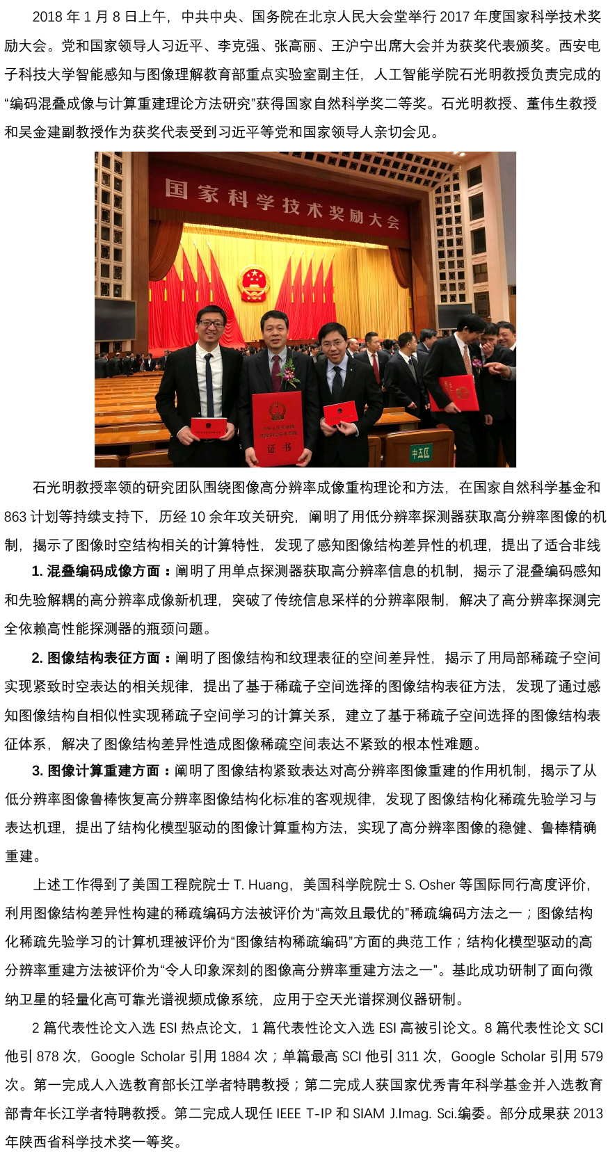 石光明教授团队研究成果获国家自然科学奖二等奖