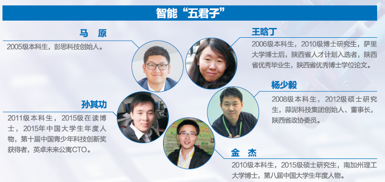 在企业界,为人工智能发展奋斗的杰出校友亦是数不胜数:前美国亚马逊首席科学家、Amazon Go创始人、京东数科AI实验室首席科学家薄列峰;常州迪瑞特电子科技有限公司创始人、总经理贾颖;商汤科技联合创始人、总经理马堃;中科院微小卫星创新研究院科研管理部部长程睿;华为AI云服务负责人、FusionInsight数据洞察开发部主任工程师钟伟才教授;苏州思必驰信息科技有限公司CTO周伟达教授;陕西电子信息集团下属的陕西黄河集团有限公司主任设计师、黄河集团设计研究所副所长凤宏晓;阿里巴巴技术发展战略部高级专家石洪竺;陕西国博政通信息科技有限公司总经理邓颖敏;探知图灵科技创始人徐巍等。