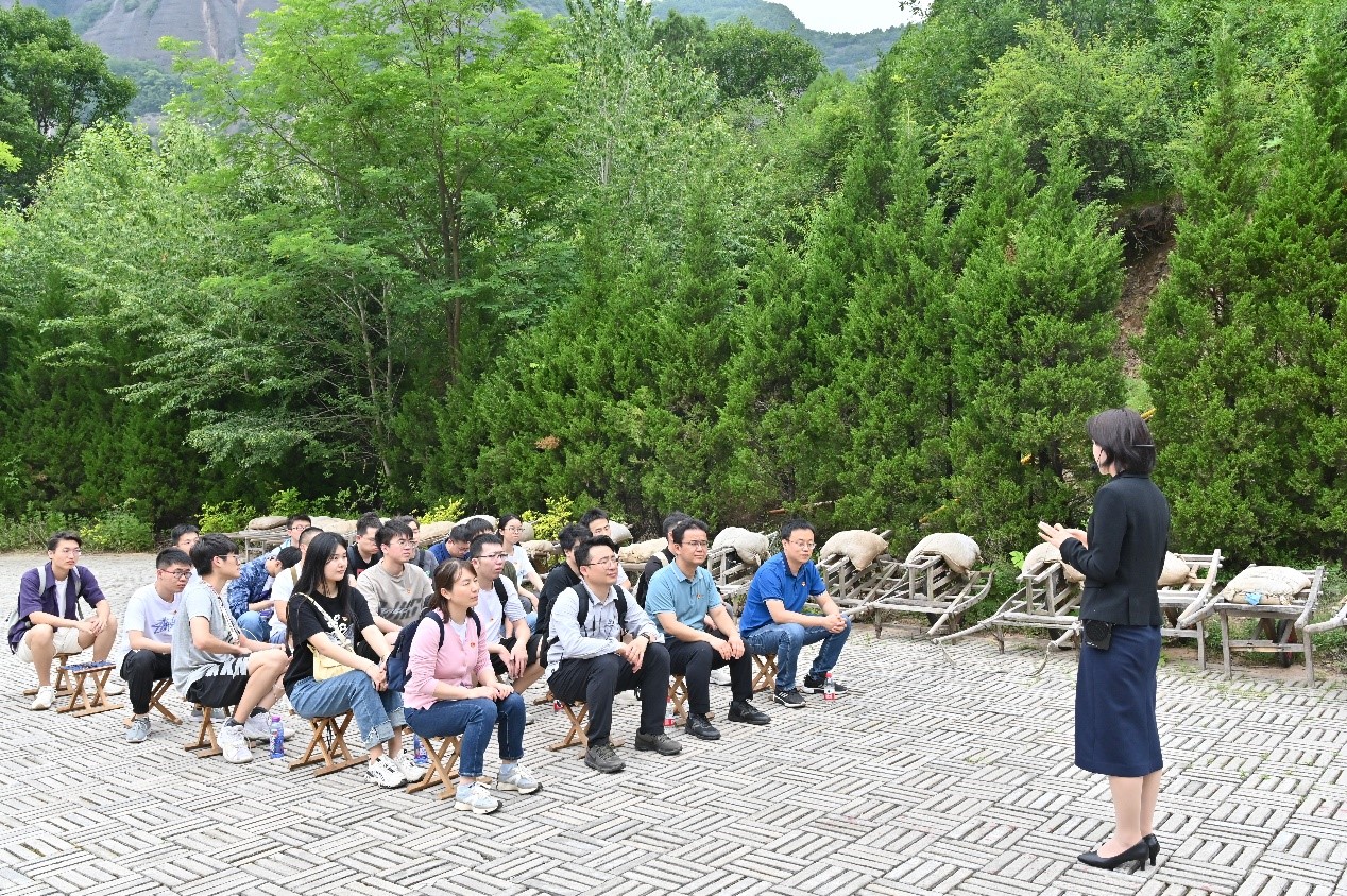 中午时分,全体人员前往薛家寨革命旧址。薛家寨革命旧址位于海拔1600余米高的悬崖峭壁上,地势险峻,山间密林丛生,蜿蜒曲折,红军利用地势建造了防御工事和医疗所、兵工厂等后勤基地。在山脚下,全体人员聆听了教学老师的现场沉浸式党课,共同回忆了发生在这里的感人事迹。