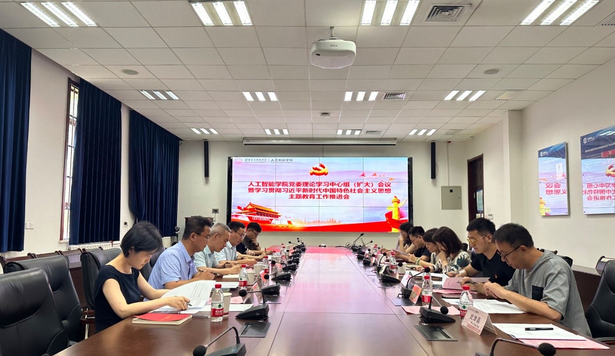 郭俊充分肯定了学院前期主题教育取得的成果,并就下一步的工作推进提出了四点要求:一是要高度重视,坚持高标准、严要求、实举措,形成台账,紧抓落实,扎实推进主题教育各项工作全面展开;二是要强化担当,紧盯调研中的关键环节、重要事项,持续将调查研究引向深入,形成高质量的调研成果;三是要明晰职责、主动作为,根据学校主题教育的总体安排,充分结合学院实际,周密安排院党委、党支部及师生党员各项学习教育工作;四是要以学促干、争创特色,以主题教育为契机,切实推动学院在人工智能领域勇立潮头,在促进学院建设发展方面取得实质进展。