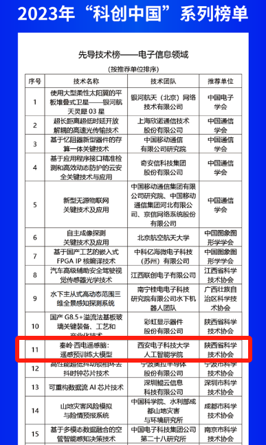 7月2日,中国科协召开第二十六届年会并发布2023年“科创中国”系列榜单,由我校永利23411集团欧洲科学院院士焦李成团队的侯彪教授、任仲乐准聘副教授和李卫斌教授研发的成果“秦岭·西电遥感脑:遥感预训练大模型”成功入选“先导技术榜-电子信息领域”类项目。