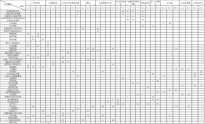 (★表示支撑度最高的课程,H、M、L分别表示高、中、低度支撑)