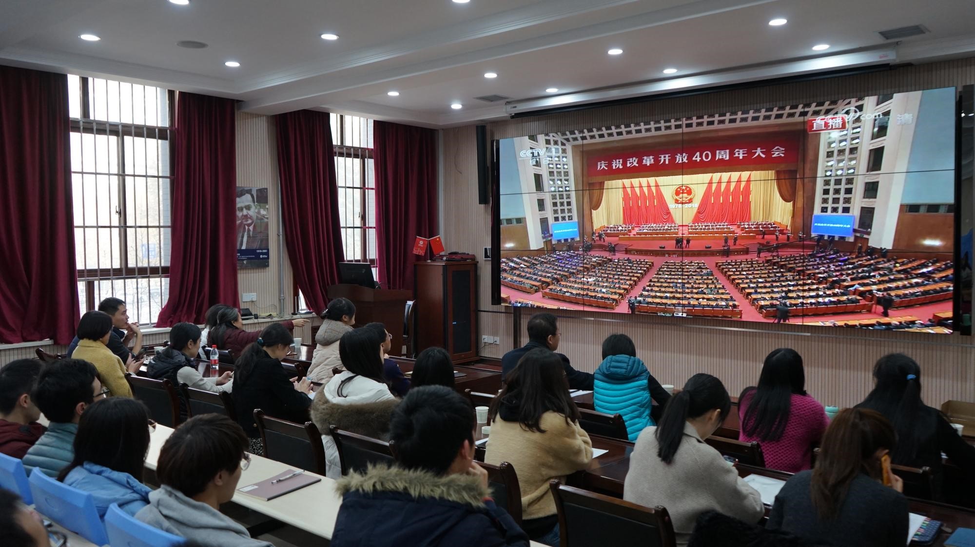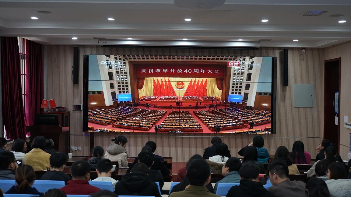 西电新闻网讯(通讯员 赵蕾)庆祝改革开放40周年大会18日上午10时在人民大会堂举行,中共中央总书记、国家主席、中央军委主席习近平出席大会并发表重要讲话。永利23411集团组织党员干部和广大师生观看庆祝改革开放40周年大会,观看人员包括党委书记魏峻,智能感知与图像理解教育部重点实验室副主任侯彪教授,党委副书记高晖,副院长马晶晶,全体老师和各学生党支部代表。