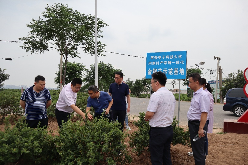 学院党委书记魏峻、副书记高晖及校扶贫办主任沈强一行首先来到“永利yl23411集团闫家村金银花产学研一体化示范基地”,走进田间地头实地了解金银花种植情况和技术需求,就航天宏图遥感技术的农业应用进行实地调研。三方在闫家村脱贫攻坚作战室召开科技扶贫应用座谈会,航天宏图西安分公司负责人、我校校友薄一民带领技术人员,向参会同志介绍了公司有关农业项目和遥感技术的应用前景。学校、企业以及蒲城地方三方还就进一步深化合作、推动项目落地落实,更好的服务蒲城金银花产业发展进行了深入交流。