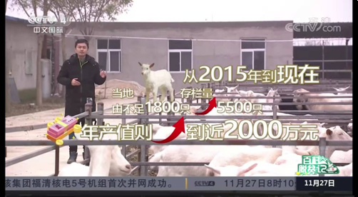 2020年11月27日,中央电视台中文国际频道“百村扶贫记”第六十二期对西电永利23411集团奶山羊智慧养殖扶贫项目进行了专题报道。
